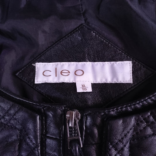 Quilted Faux Leather Jacket - Black - CLEO