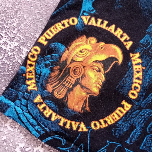 Vintage AZTECA Big Print All Over Puerto Vallarta Mexico T-Shirt