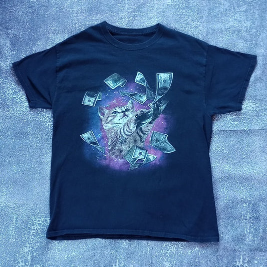 Kitten Throwing $100 Bills Graphic T-Shirt
