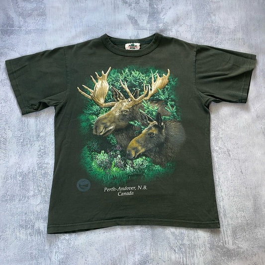 Vintage 90s Moose Big Print All Over Perth N.B. Canada T-Shirt