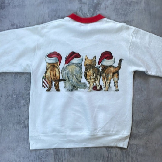 Vintage 90s Kittens/Cats In Santa Hats Double-sided Crewneck Sweater