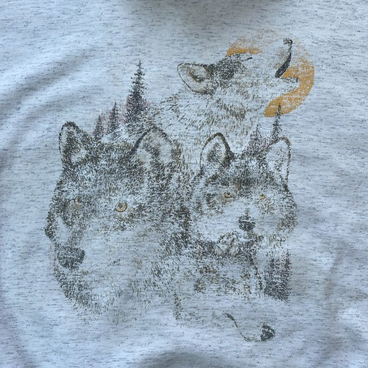 Vintage 90s Faded Wolves Whowling At Moon Sweater