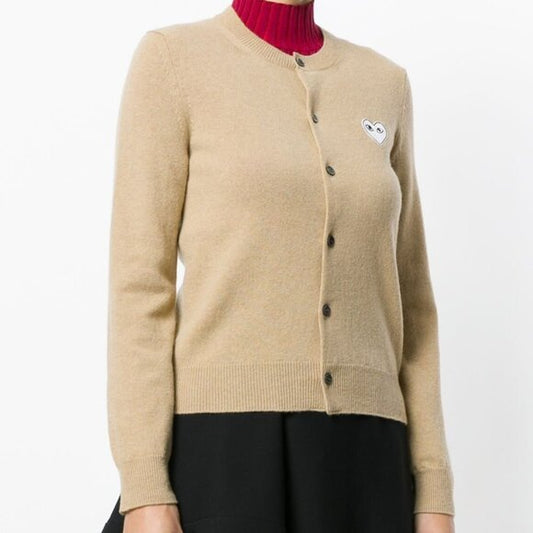 Comme Des Garcons Play Embroidered Heart Wool-knit Cardigan
