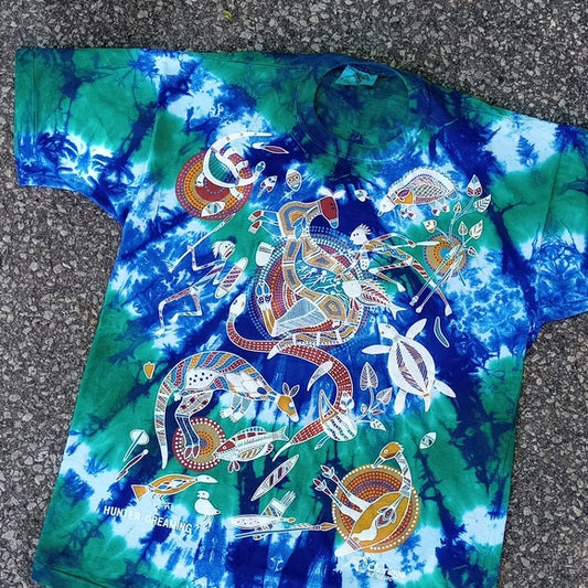 Vintage 90s Churinga Australia Hunter Dreaming Aboriginal Tie Dye Shirt