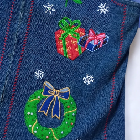 Vintage Women’s Anne Carson Holiday Applique Denim Vest SIZE: L