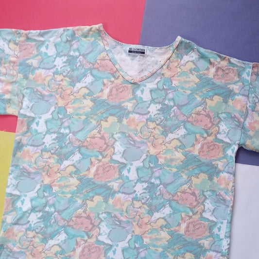 Vintage Single Stitch Floral Print Au Coton T-Shirt UNISEX