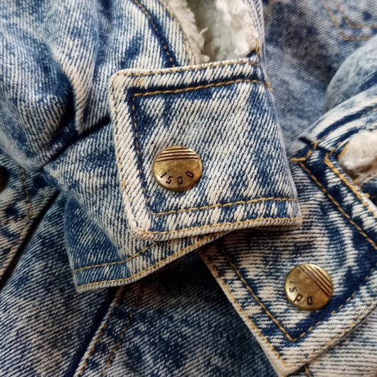 Vintage Stonewash Bomber Denim Sherpa Button-Up Jacket