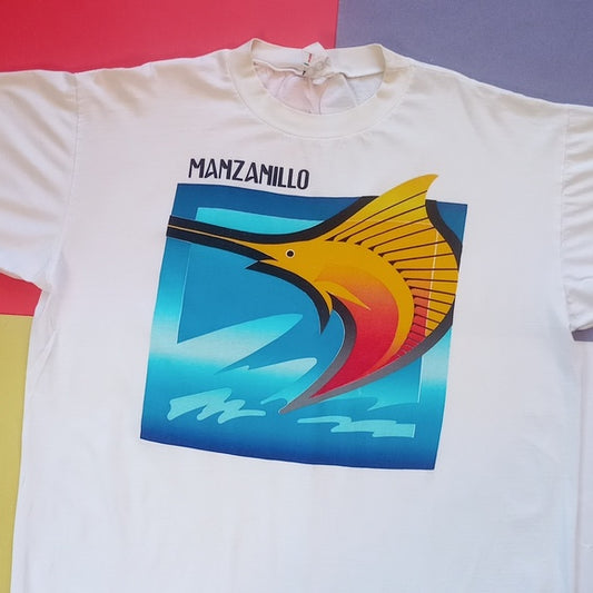 Vintage 80s Manzanillo Sword Fish Single Stitch Graphic T-Shirt unisex