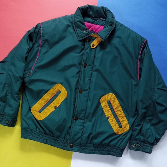 Vintage 80s Retro Colour Block Blue Winter Jacket Unisex Artic Lights