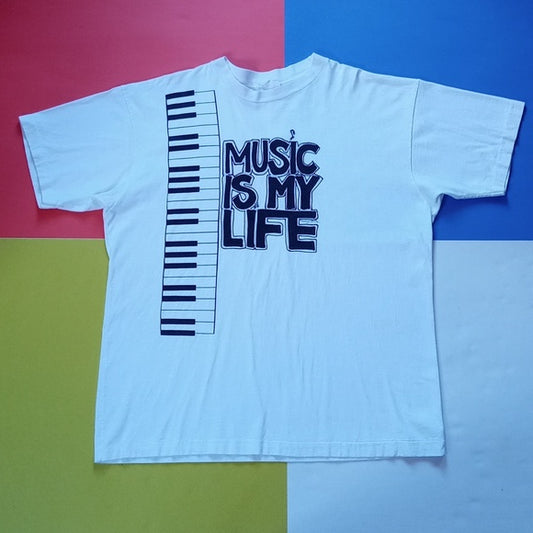 Vintage 90s Music Is My Life PIANO Single Stitch T-Shirt Unisex Marilyn Brooks