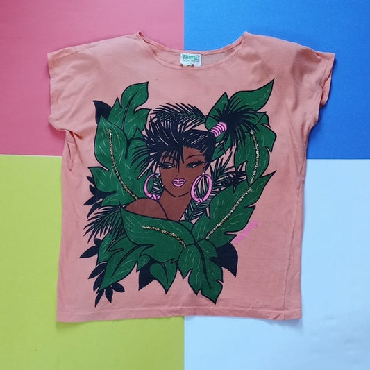 Vintage 90s Women In Jungle Leaves Traffic Graphic Print T-Shirt