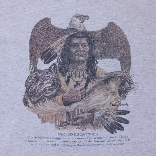 Vintage 1989 Native/Indigenous Blood Relative Cougar/Eagle/Wolf T-Shirt