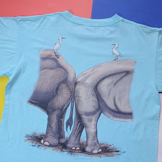 Vintage 1992 Asia & African Elephants Unit Big Print Single Stitch T-Shirt Doubl