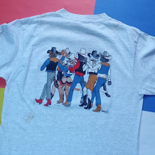 Vintage Cats In Cowboy Attire Western Front & Back Single Stitch T-Shirt