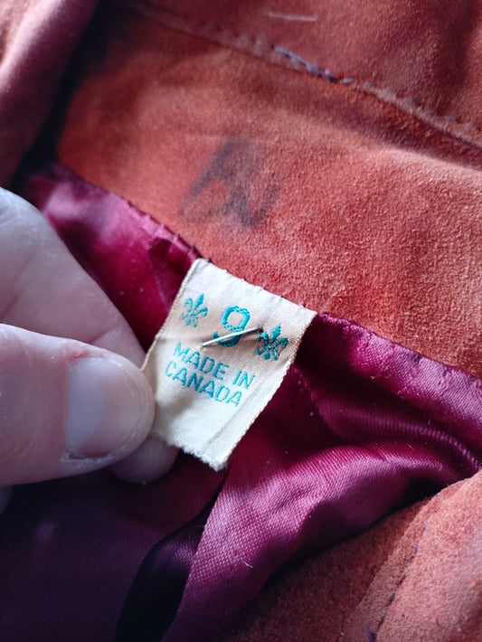 VINTAGE Suede Button-Front Jacket in Rust Orange