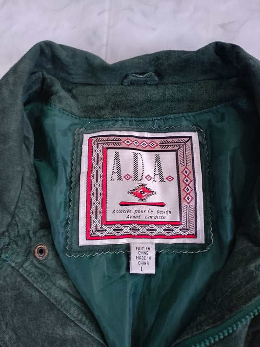 Vintage 90s Men's Suede Field Jacket - Forest Green