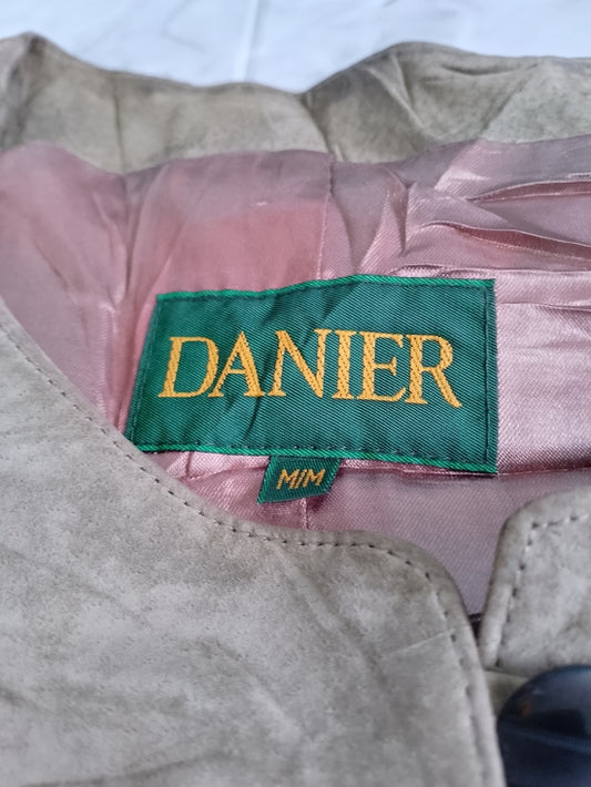 Vintage Danier Taupe Leather Button-Front Short Sleeve Jacket