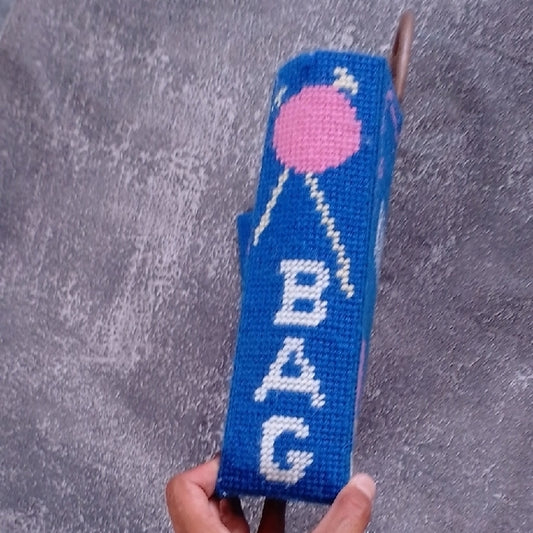 Vintage Handmade Blue and Pink Knitting Bag Tapestry Bag