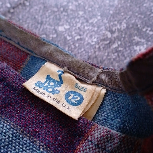 Vintage Plaid Wool Dress Short Sleeve Doll Style TOP SHOP MADE IN UK