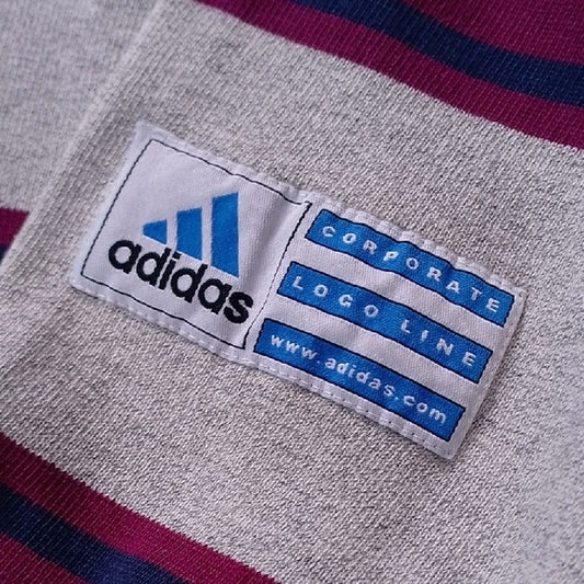 Vintage Adidas Men's Gray and Purple Striped Shirt CORPORATE LOGO LINE