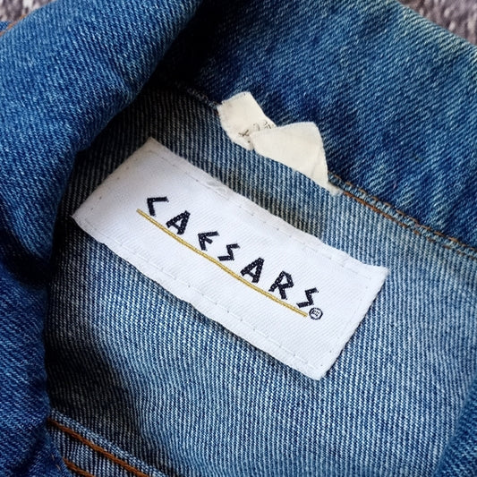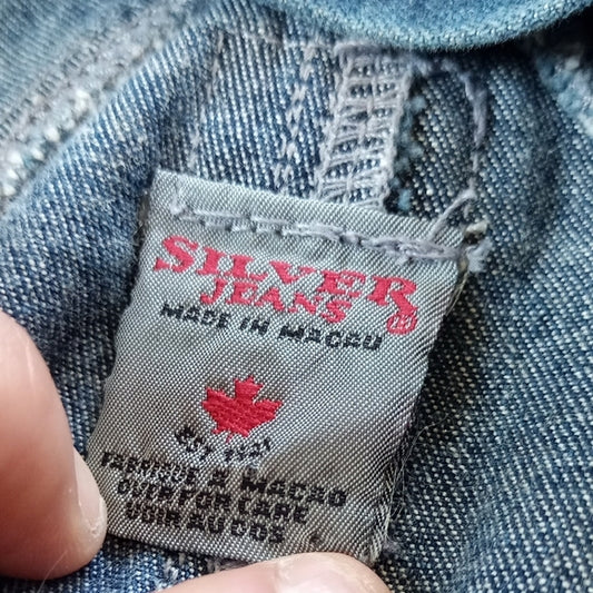 VINTAGE 90s SILVER JEANS DENIM FLARED OVERALLS BIB