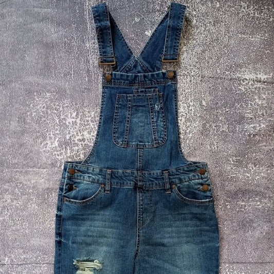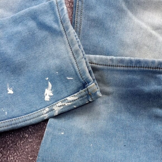 ZARA Paint Distressed Denim Overalls Knit Women Denim Stretch
