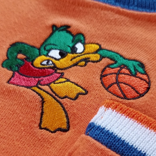 VINTAGE 1997 TINY TOONS ADVENTURES PLUCKY DUCK DUNK ORANGE Crewneck EMBROIDERED