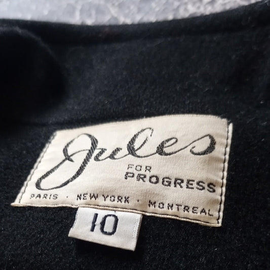 Vintage 60s/70s JULES For Progress Women's Black Coat WOOL