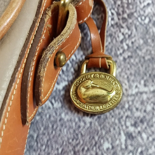 Vintage 1980s Dooney & Bourke Tan and Brown Leather Crossbody Bag