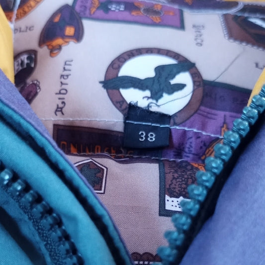 Vintage Deep Teal Performance Jacket with Yellow Collar Puffer