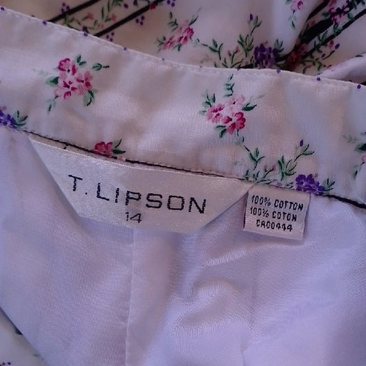 Vintage 90s T.LIPSON Floral Pleated White Skirt