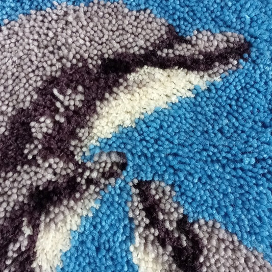 Vintage 90s Dolphin Family Jumping Out The Ocean Latch Hook Rug