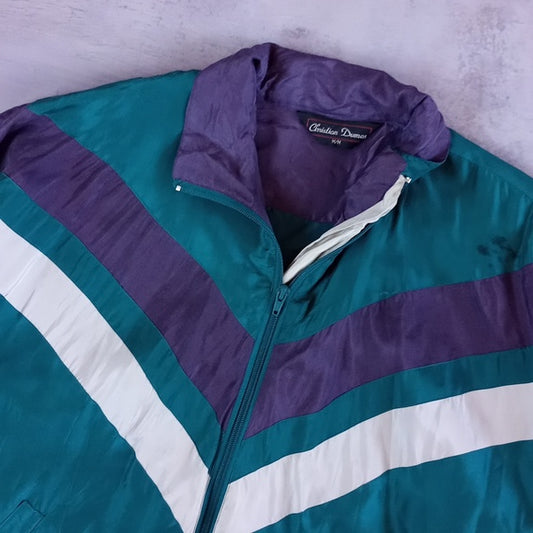 Vintage 80s Christian Dumas Colorblock Windbreaker Jacket PURPLE SILK UNISEX