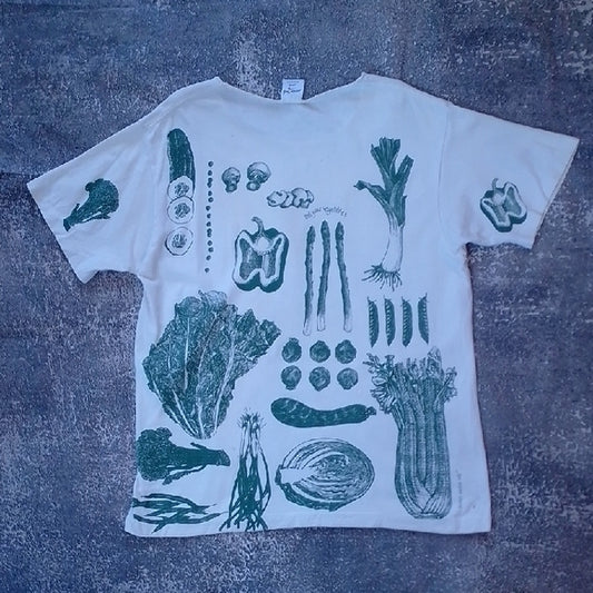 Vintage 90s AOP White and Green Vegetable Print T-Shirt
