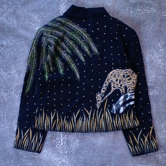 Vintage Black Jacket with Giraffe Family In Stars Design