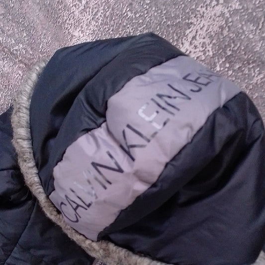 Calvin Klein Kids Dark Puffer Jacket with Faux Fur Trim