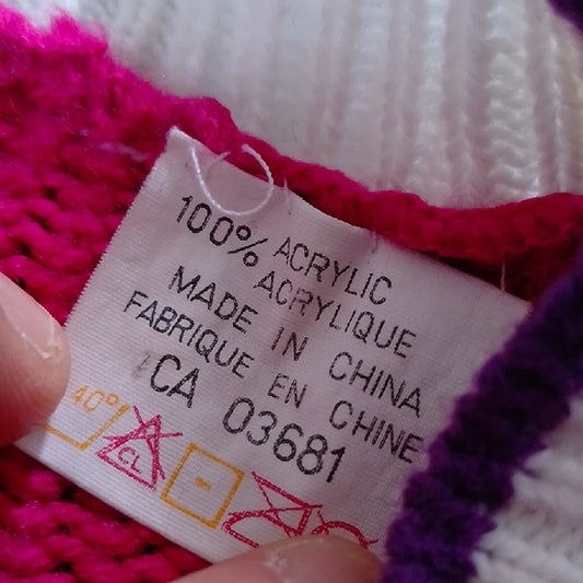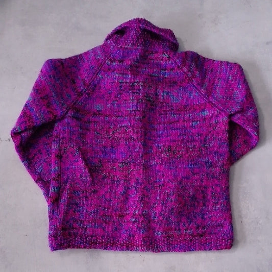 VINTAGE 90s HANDMADE Kids Purple Knit Button-Up Sweater
