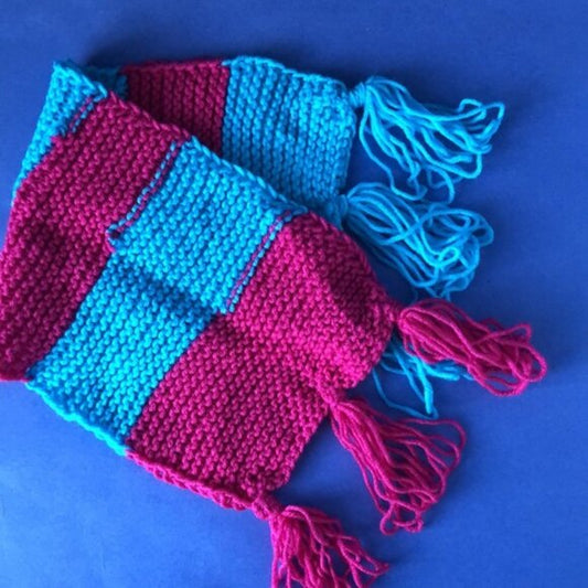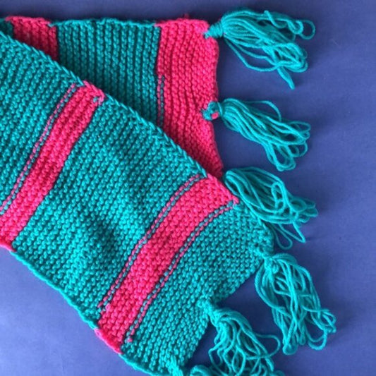 NWOT Vintage Hand-Knitted Made-in-Canada Colourful Teal & Pink Warm Scarf