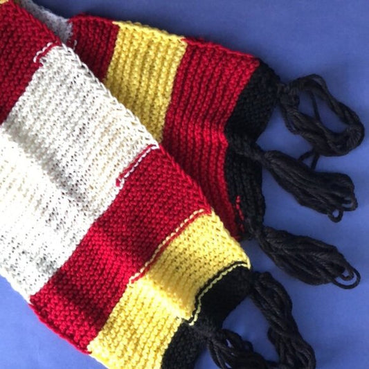 NWOT Vintage Hand-Knitted Made-in-Canada Colourful Red & Yellow Warm Scarf
