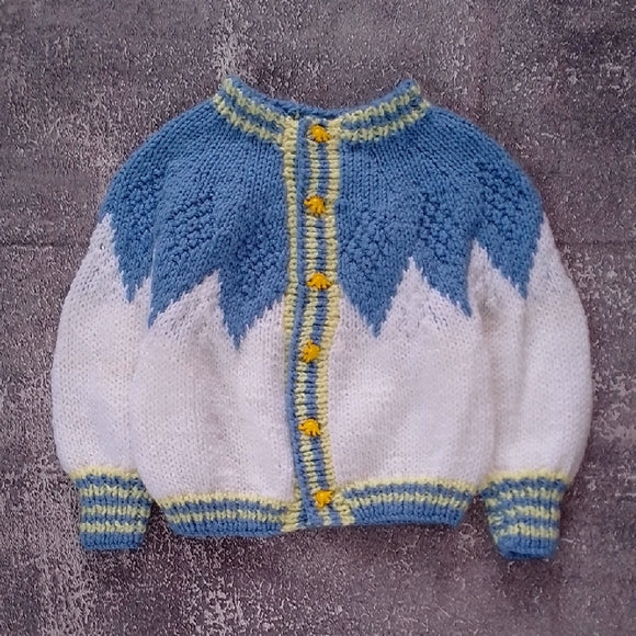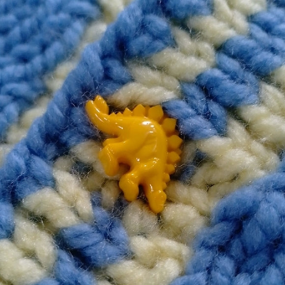 VINTAGE Blue and White Women's Sweater With Dinosaur Buttons
