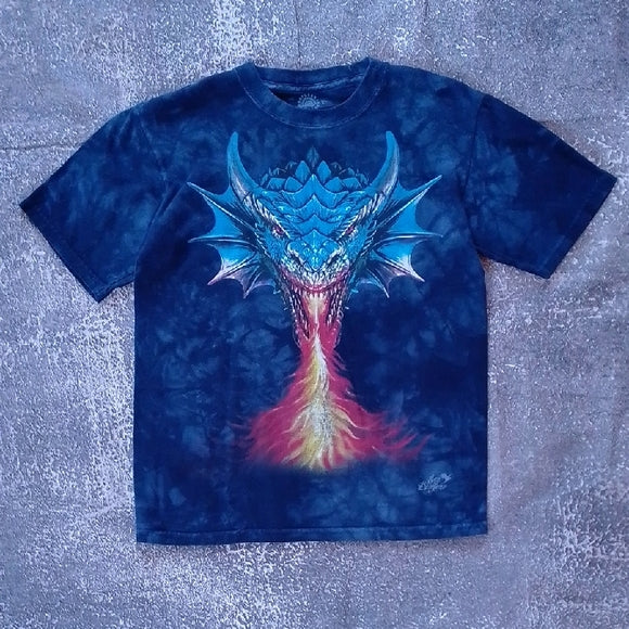 The MOUNTAIN AGE of DRAGONS Blue Dragon Graphic Kids T-Shirt Tie Dye CASA LOMA
