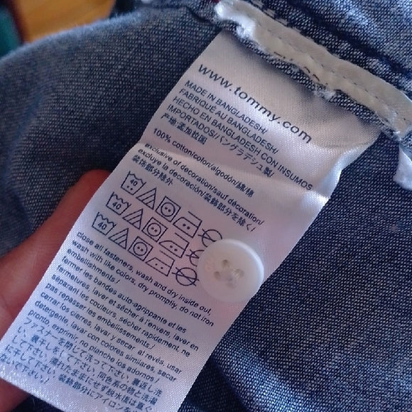Tommy Hilfiger Blue Denim Shirt with Bold Red Logo CUSOTM FIT