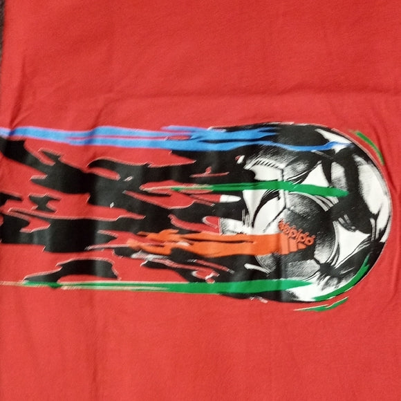 Vintage 90s ADIDAS SOCCER Graphic Red T-Shirt