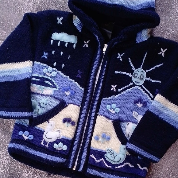 VINTAGE 90s ALPACA WOOL ASIRI'S TREASURES Hooded Sweater with Fun Patterns
