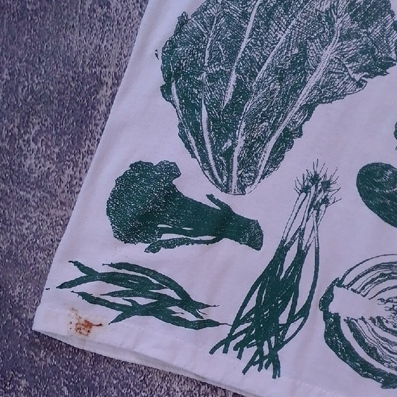 Vintage 90s AOP White and Green Vegetable Print T-Shirt