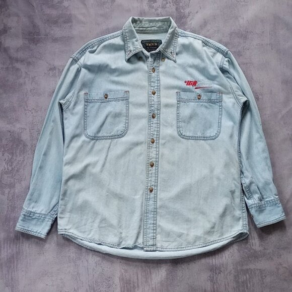 Vintage 90s IGA Home Town Proud Denim Button-Up Shirt