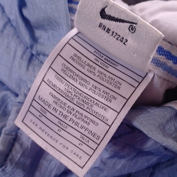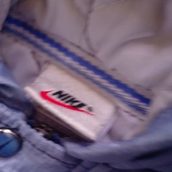 VINTAGE 90s NIKE Kids Light Blue and Navy Puffer Jacket