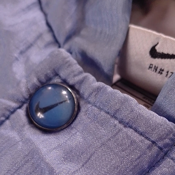 VINTAGE 90s NIKE Kids Light Blue and Navy Puffer Jacket BIG LOGO