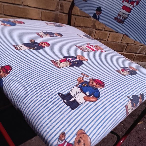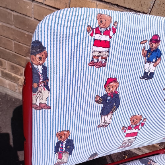 • Upholstered in genuine vintage Ralph Lauren Polo Bear fabric (circa 1990s)