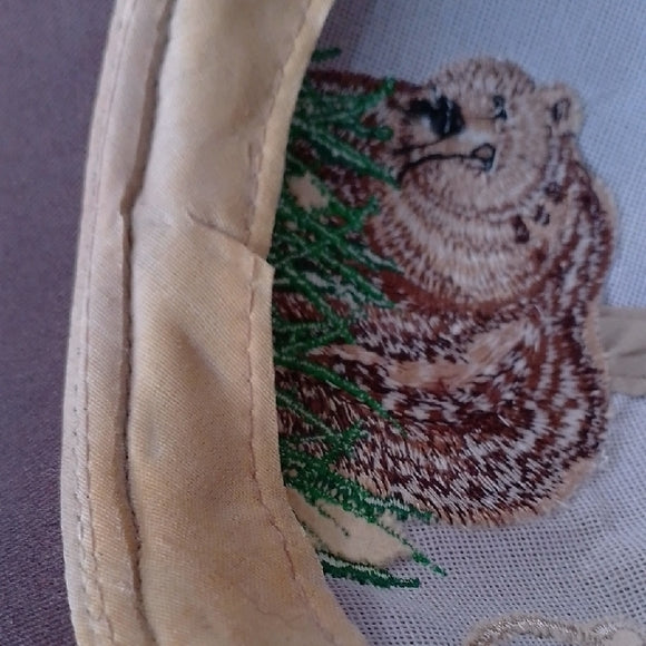 Vintage Bear In Grass Embroidered Cap - Brown and Tan